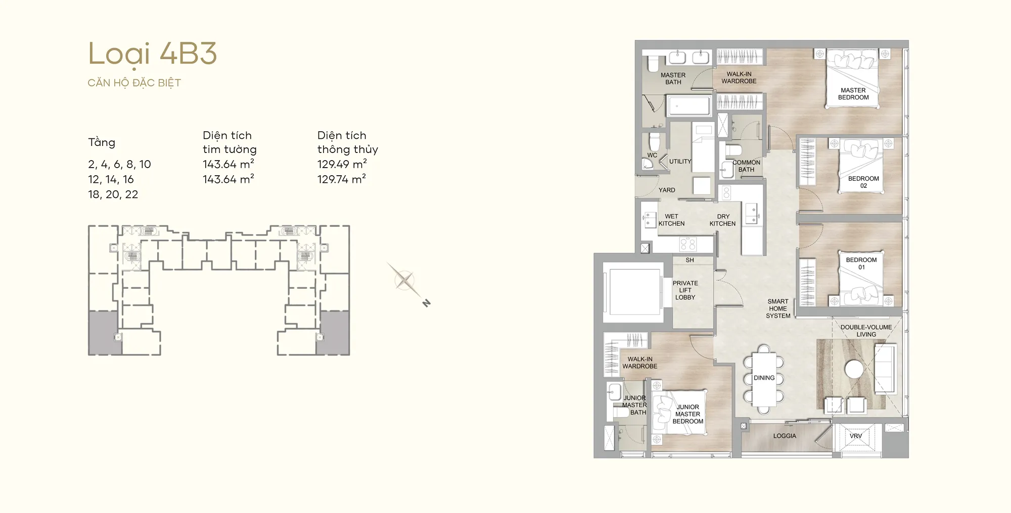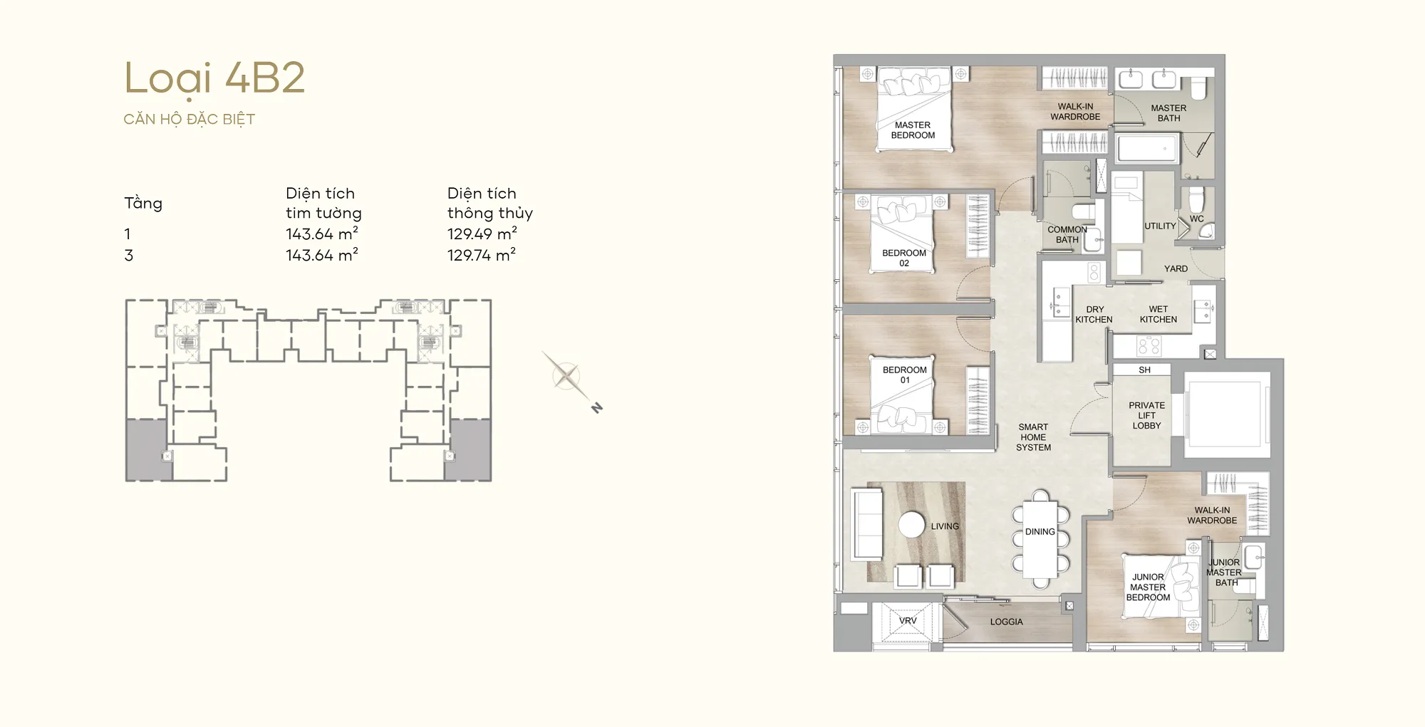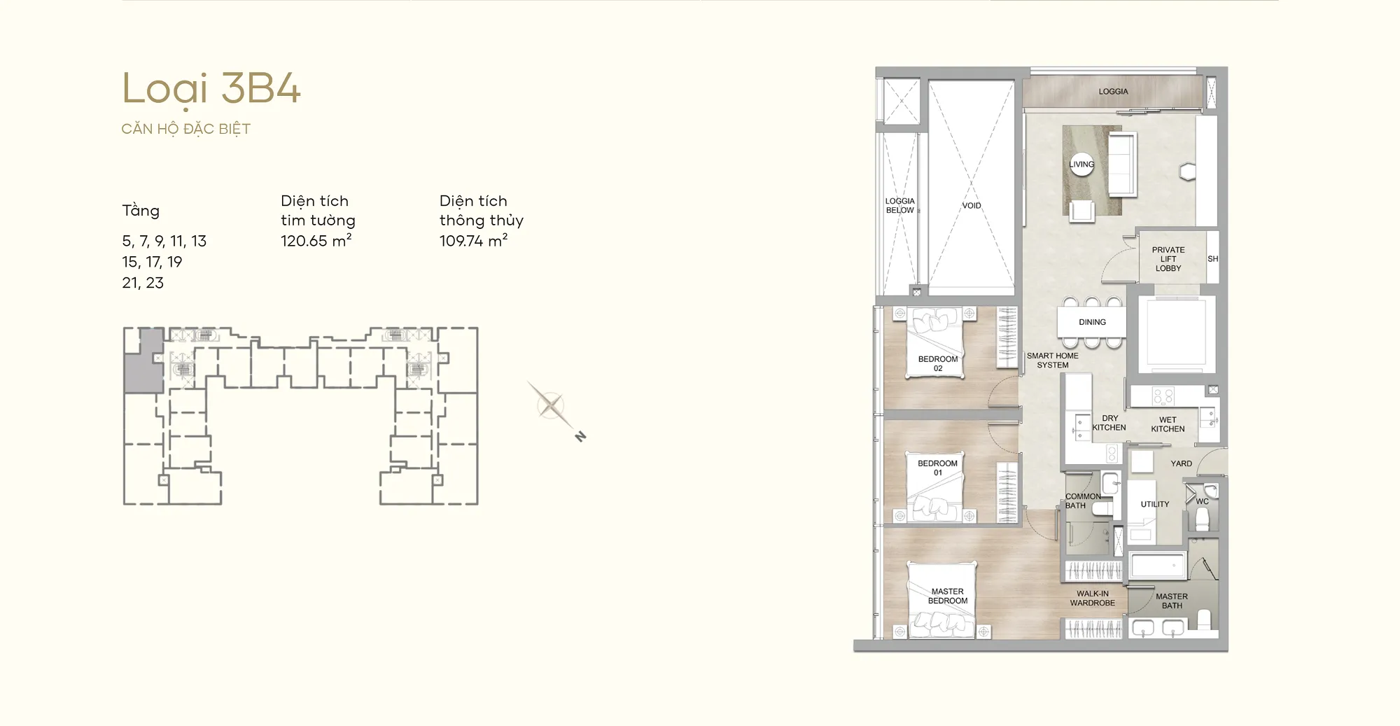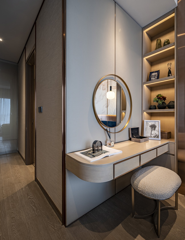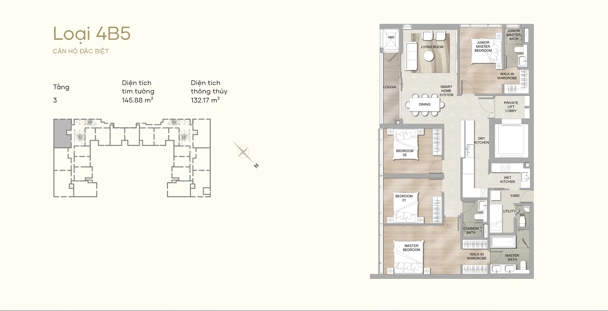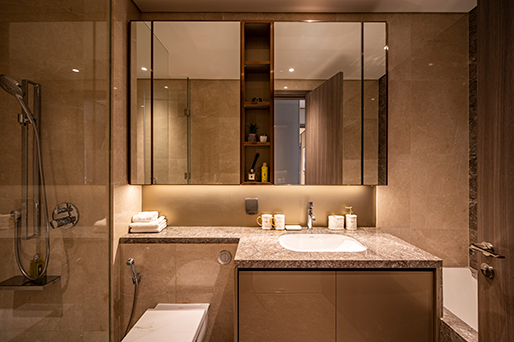 Căn hộ Amber – 4 phòng ngủ được tô điểm lên bởi những gam màu dịu nhẹ đầy tinh tế, kết hợp với những tấm đá cẩm thạch được sắp xếp khéo léo, giúp cho vẻ đẹp của căn hộ thêm kiêu sa và thanh lịch.