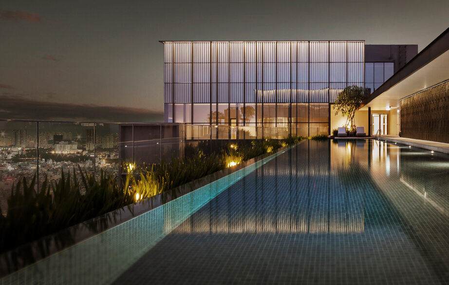 Ánh nắng dịu êm ban sáng sẽ trở nên tuyệt mỹ hơn khi ngắm nhìn từ hồ bơi vô cực 30m tại tầng thượng căn hộ.