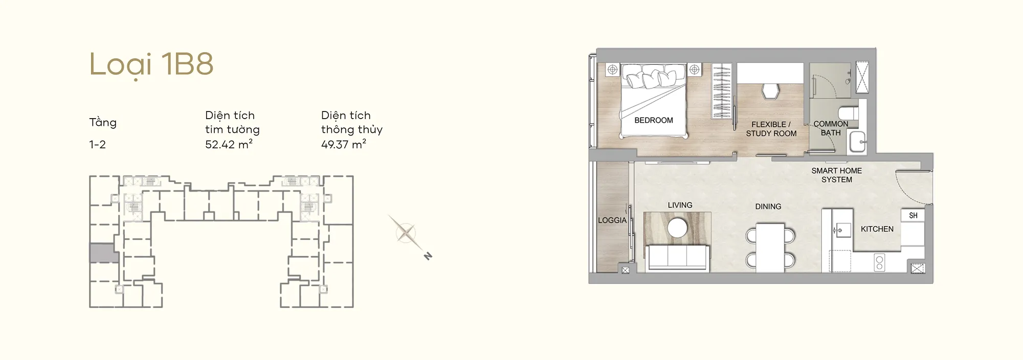 Đong đầy ấm áp tình thân với căn hộ 1 phòng ngủ – sự lựa chọn lý tưởng dành cho những cặp đôi, gia đình nhỏ khởi đầu hạnh phúc khi sở hữu căn hộ cao cấp trung tâm hành phố, giúp cho lối sống 4.0 hiện đại trở nên dễ dàng hơn bao giờ hết