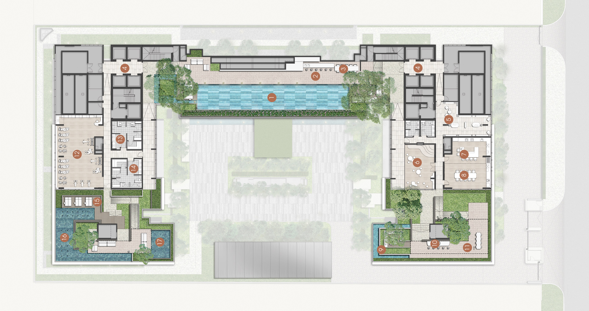 Tại tầng 25, các tiện ích phục vụ cho nhu cầu giải trí, chăm sóc sức khỏe và sắc đẹp được tập trung phát triển tối đa khi xây dựng tích hợp các dịch vụ: hồ bơi, bồn jacuzzi, phòng gym, phòng hội/họp cũng như khu vui chơi trẻ em ngay tại tầng thượng của căn hộ, giúp tạo nên một ốc đảo xanh đúng nghĩa giữa lòng thành phố.