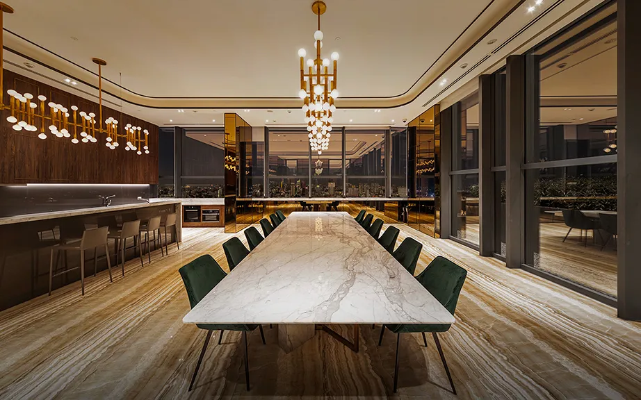 Tại The Marq, phòng chiêu đãi tiệc được xây dựng với mục đích mang đến không gian tổ chức sự kiện cho các hộ gia đình một cách đẳng cấp và riêng tư nhất.